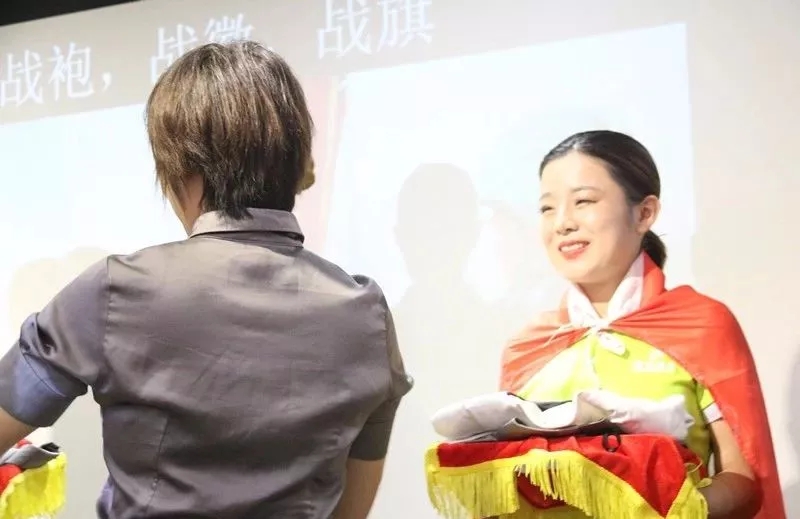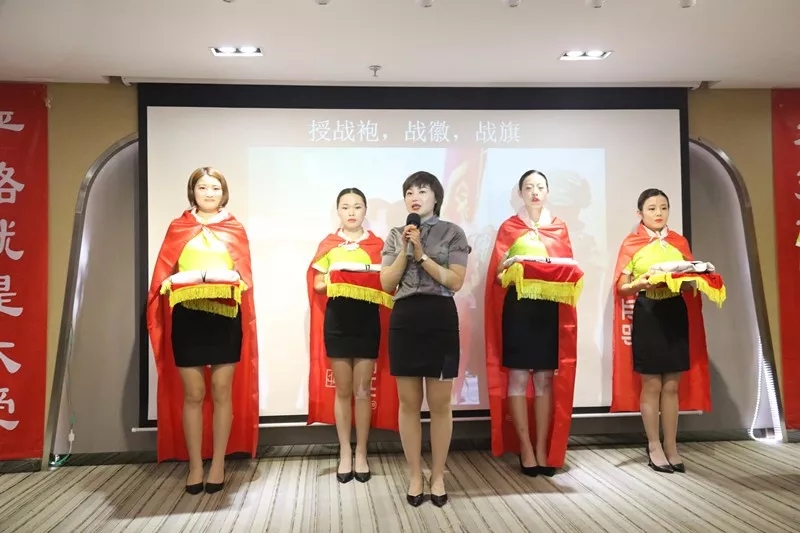 儀式上,行政部Sophie總裁上臺(tái)為我們的新家人,授戰(zhàn)袍、戰(zhàn)徽、戰(zhàn)旗,并致歡迎詞。恰逢兒童節(jié),祝愿所有新家人都能夠像孩子一樣,永遠(yuǎn)帶著一顆初心,堅(jiān)持并堅(jiān)定地往前走,而盛世,也將陪伴著每一位家人成長(zhǎng)、成材!