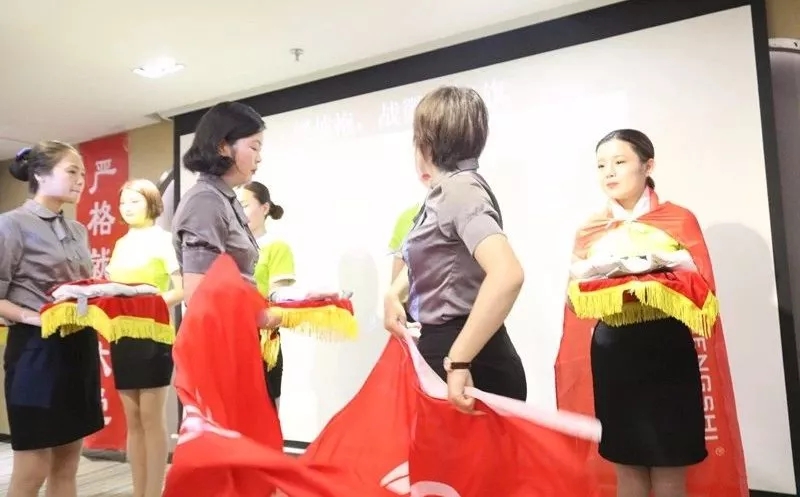 緊接著,臺(tái)上的家人們進(jìn)行了莊嚴(yán)的入職宣誓!戰(zhàn)旗披肩,臺(tái)上的家人們猶如一個(gè)個(gè)戰(zhàn)士一般奮勇當(dāng)先,英姿煥發(fā),宣誓堅(jiān)定而有力!從此刻起,就成為盛世人了,我們致力把職業(yè)當(dāng)事業(yè),把使命當(dāng)生命,把信念當(dāng)信仰,把企業(yè)文化深深注入我們的骨子里,我們的血液里,并為我們共同的夢(mèng)想而終身奮斗!