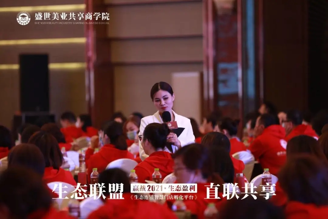 ▲ 盛世美業(yè)共享商學院院長王星宇分享成功案例