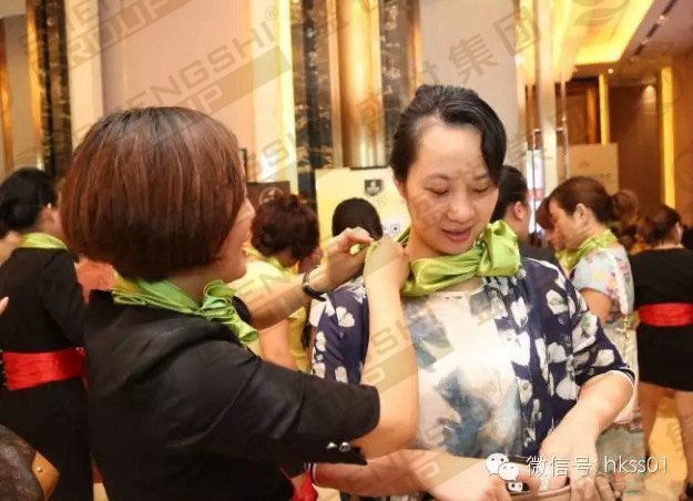 綠色代表著健康與生命力,每位家人都佩戴著綠絲巾,傳遞綠色環保意識,讓更多的人關注頸部美麗與健康!