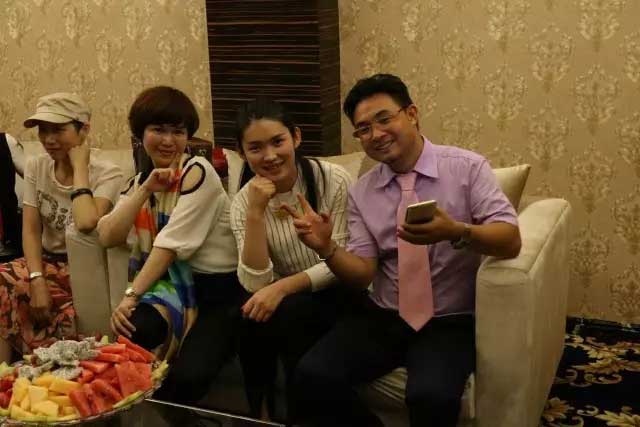 家人和董事長熱情擁抱
